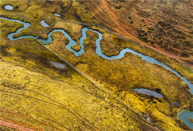 濕地內(nèi)一條條小溪常年游走于草甸上