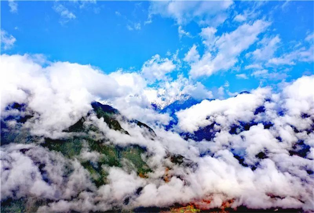 怒江有著顯著的垂直立體氣候,隨著海拔的上升,景觀從峽谷最低處艷陽(yáng)高照下的碧藍(lán)江水,到山間色彩斑斕的原始森林,再到更高一層的云海日出,直至頂端白雪覆蓋的圣潔雪山。