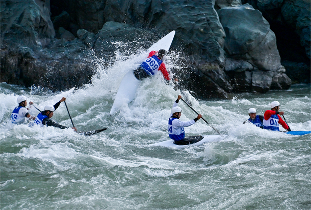 到了每年的12月底,來(lái)自世界各地的皮劃艇運(yùn)動(dòng)員會(huì)在這里聚集。一艘艘皮劃艇在江中起伏,運(yùn)動(dòng)員們?cè)跊坝康呐拥捞魬?zhàn)天險(xiǎn),一決高下。